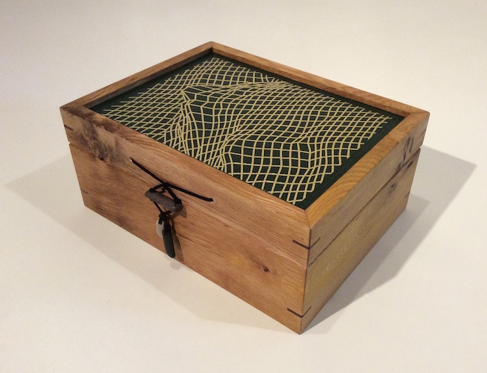 Topography Book Cover Bold topography graphic works beautifully with the oak, walnut, leather and stones.