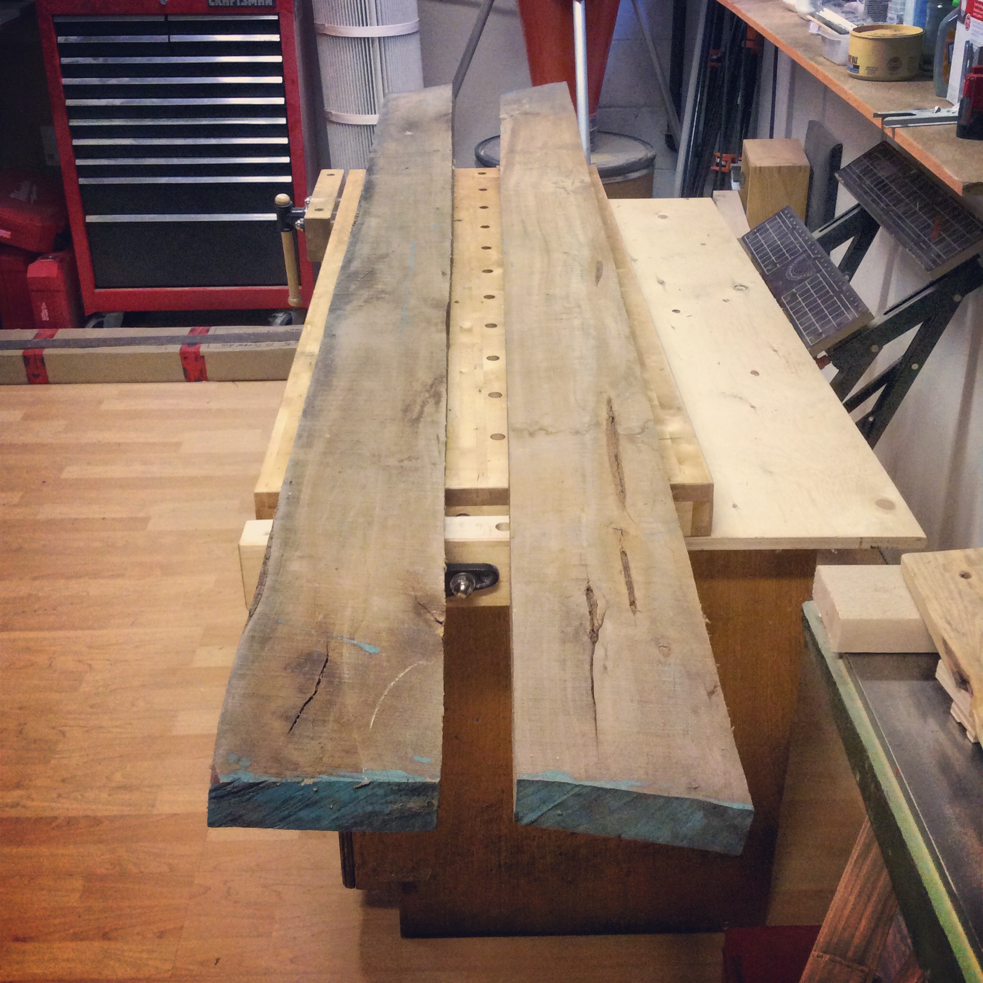 Cherry lumber ready to become a table. Working this lumber was an exercise in finding straight pieces in twisted wood.