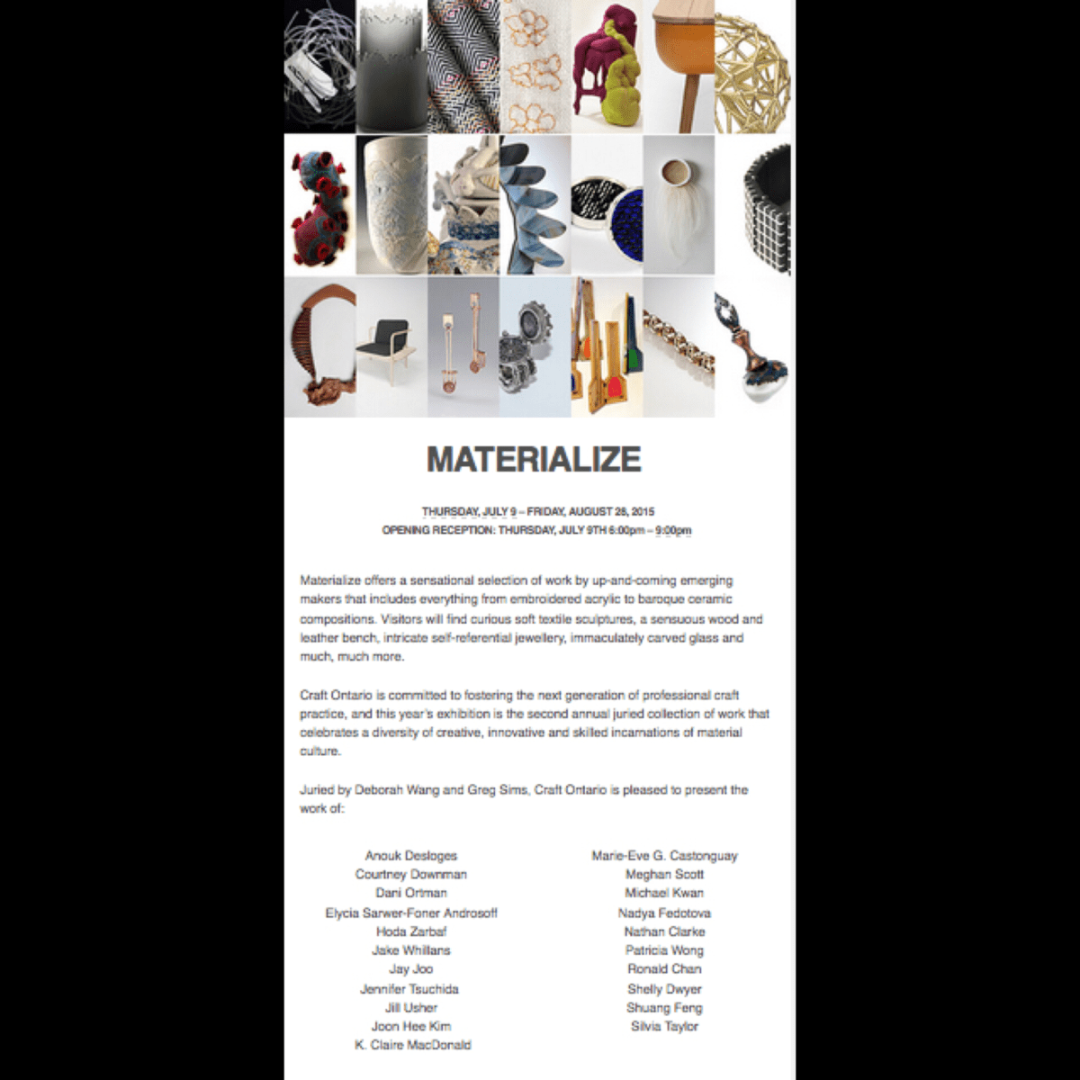 MATERIALIZE ARTIST LIST MATERIALIZE features artists who work with a variety of different materials including wood, metal and textiles.