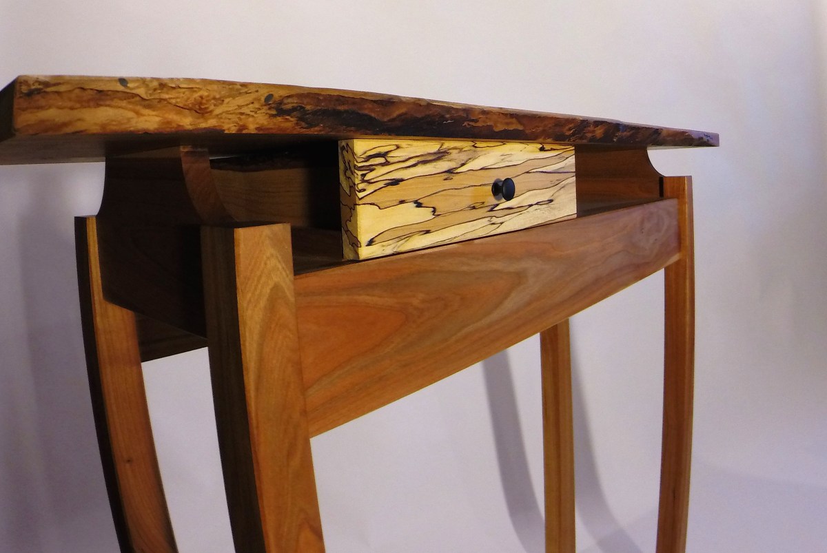 Spalted Maple Drawer Front Dramatic natural lines seen in both the spalted maple drawer front and live-edge top.