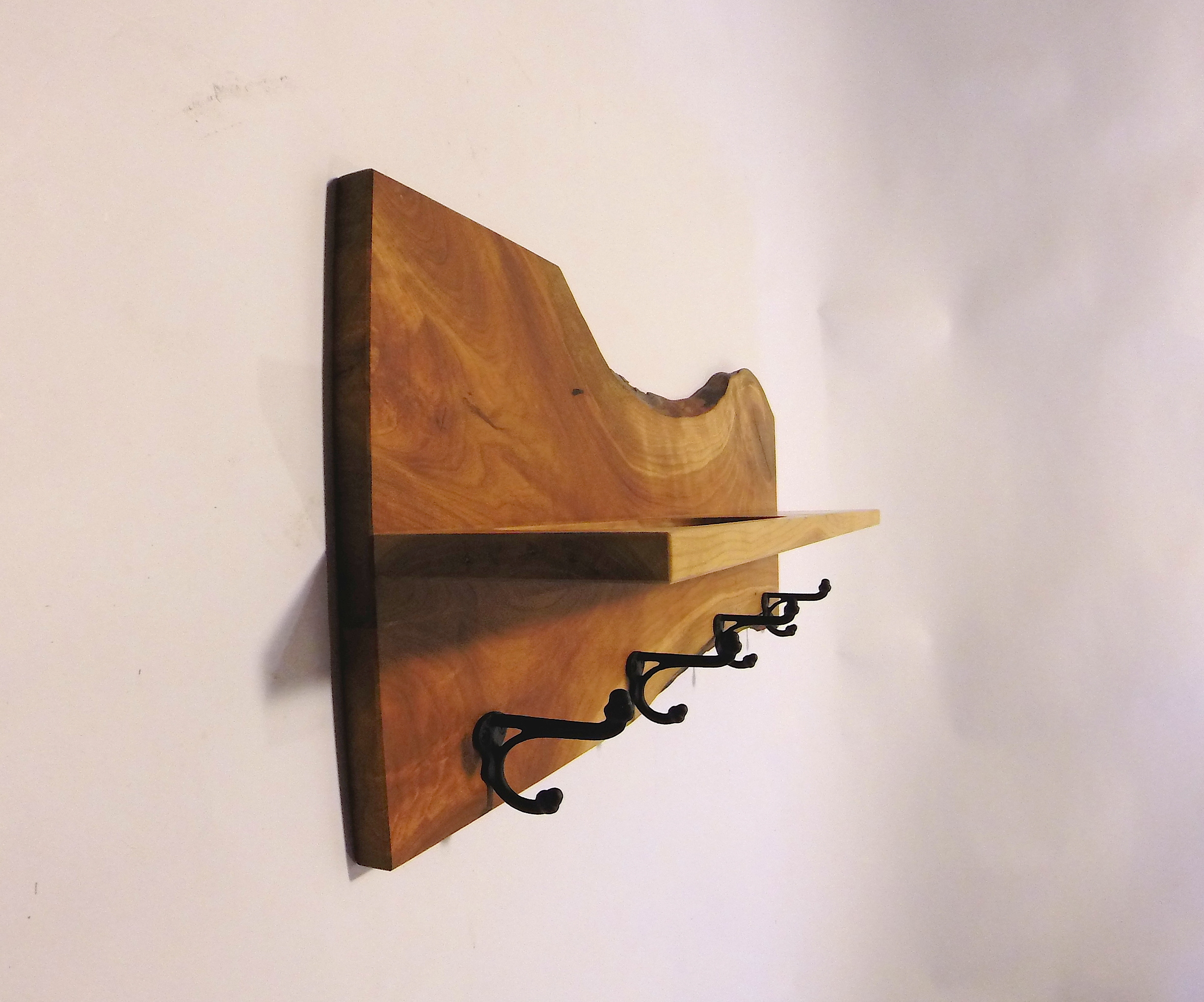 Live-Edge Cherry Hanging Shelf By the front door, perfect for coats. In the bedroom, perfect for ties, belts, purses.