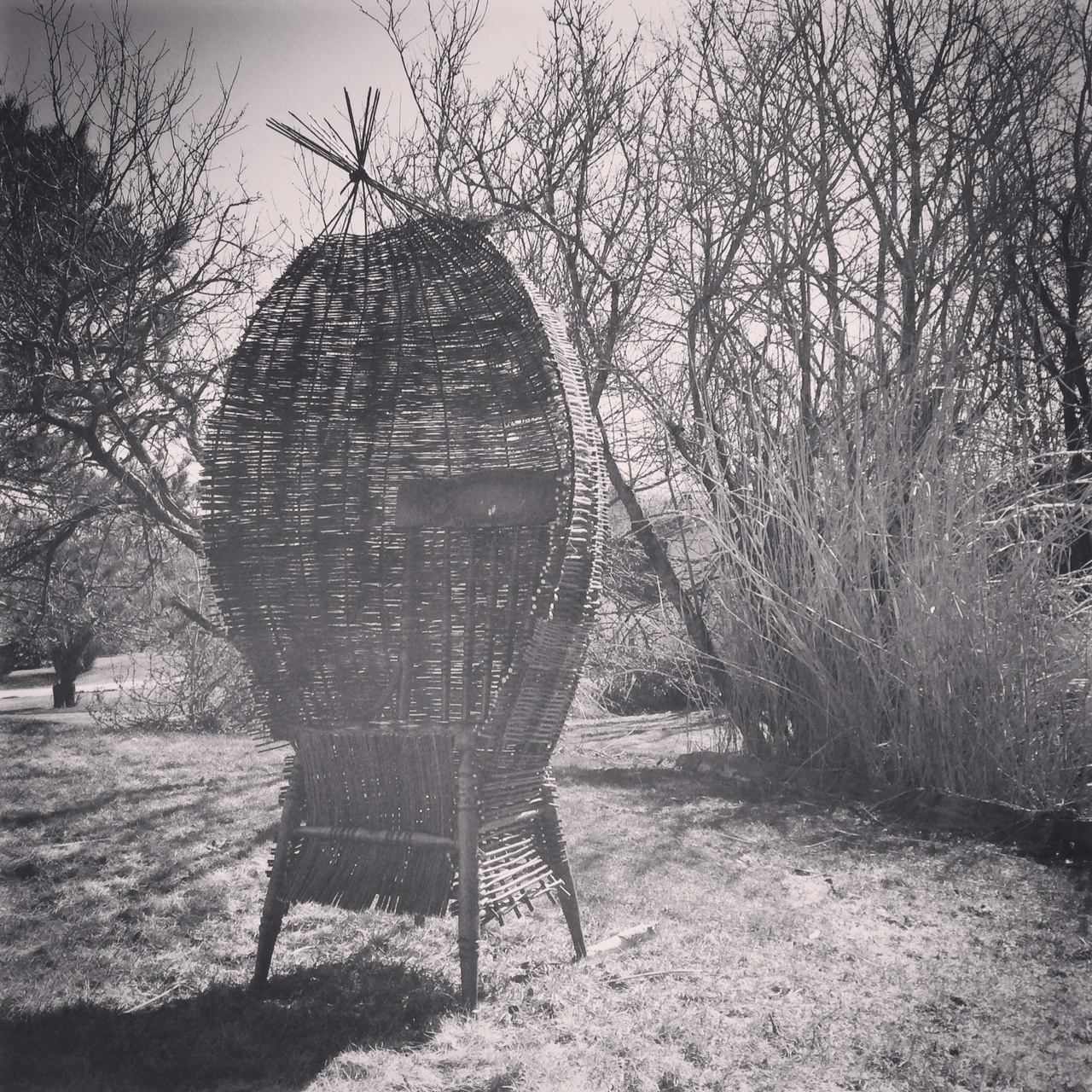 Finished. The willow chair looks at home outdoors.
