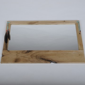 Walnut Mirror with Leather and Wild Sourced Feathers